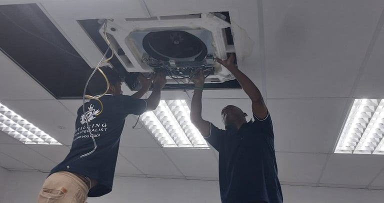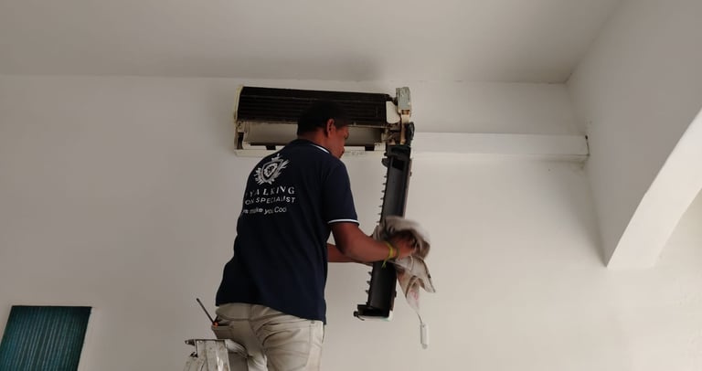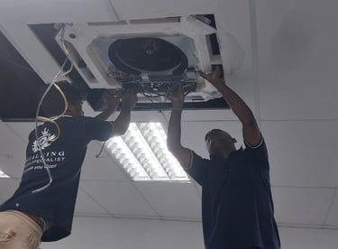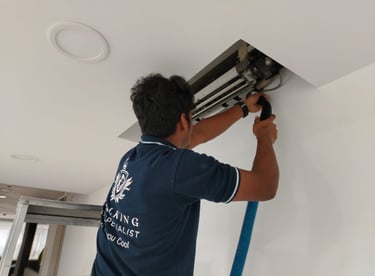 Our standard residential servicing includes cleaning filters, blower, drainage, and condenser units — preventing water leaks, weak airflow, and foul smells.